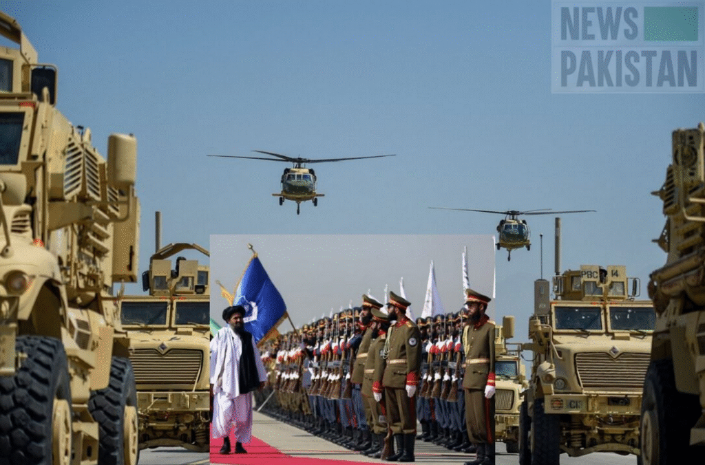 BAGRAM AIR BASE: Chinese and Irani diplomats, alongside a sizeable crowd (sans women) witnessed the military parade here commemorating the completion of three years of Taliban rule over Afghanistan. Soviet-era pieces of artillery and tanks were towed through the Bagram Air Base from where US led operations against Taliban for twenty years.