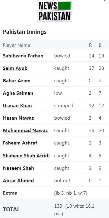 RAWALPINDI CRICKET STADIUM: Although Green Shirts Mohammad Nawaz and Saim Ayub manifested their spinning skills on Tuesday (28th Oct, 2025) by restricting Proteas to 194 for nine wickets in the 1st T20I cricket match, Pakistan Cricket team collapsed in 195 runs chase and barely scored 134 for 9.