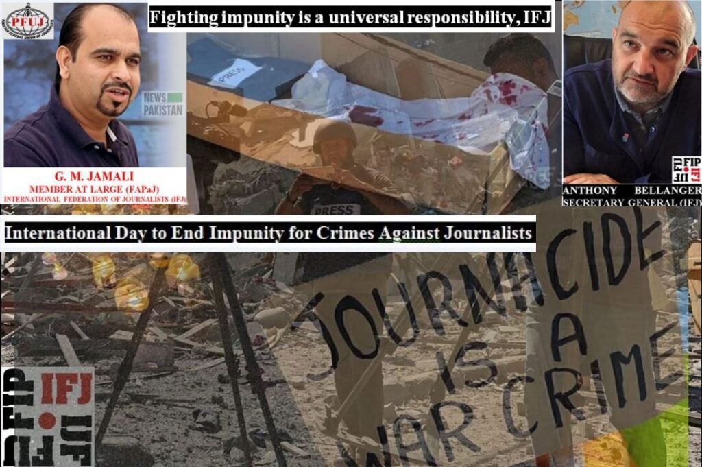 KARACHI (NPTV/IFJ): On Sunday (2nd Nov, 2025) the Int’l Federation of Journalists (IFJ) and its affiliates all over the globe are observing the International Day to End Impunity for Crimes Against Journalists (IDEI).