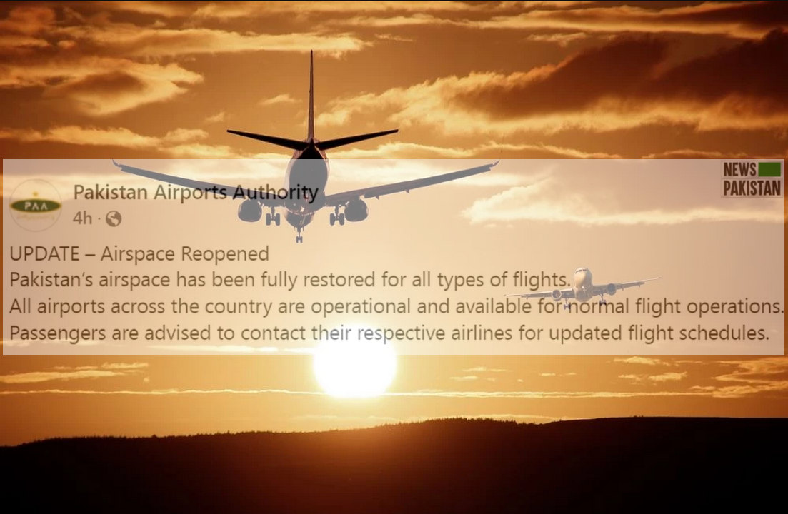 Pakistan Airports Authority released a Notice to Airmen confirming the restoration of the country’s airspace for all types of flight operations. All airports across the country are now fully functional and available for routine services.